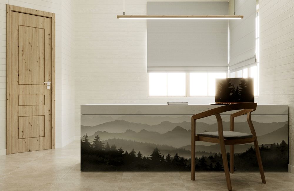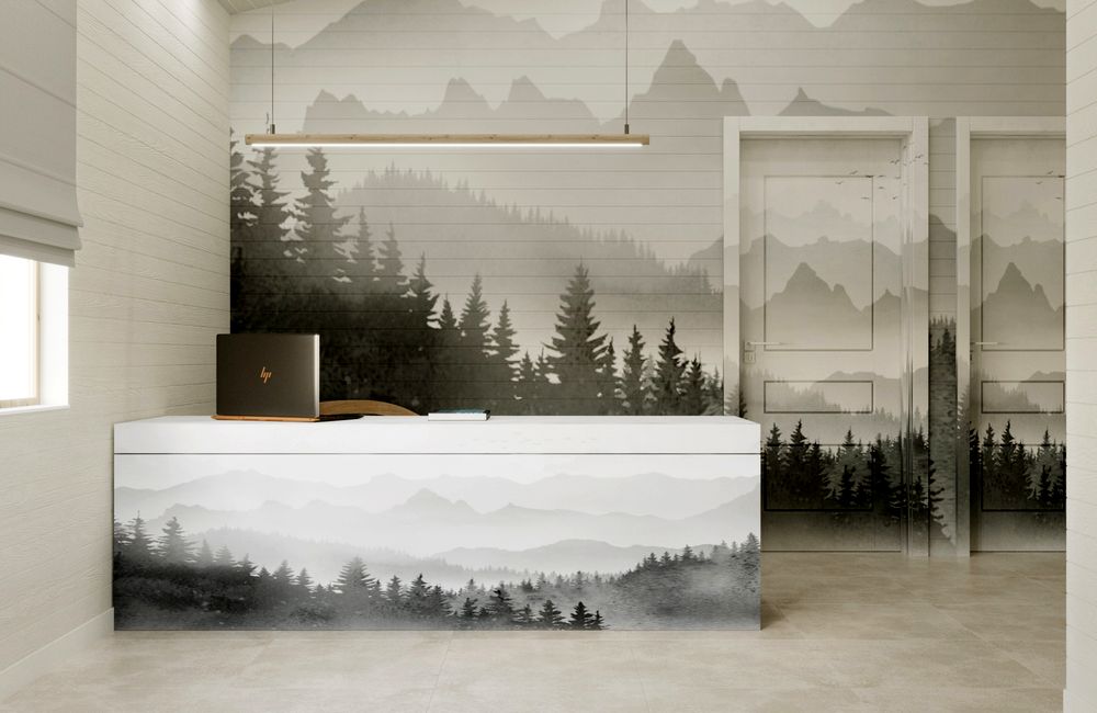 Интерьеры выполнены из лучшей древесины, а внешний вид сливается с окружающей природой, цветом напоминая ствол сосны и сосновую шишку.