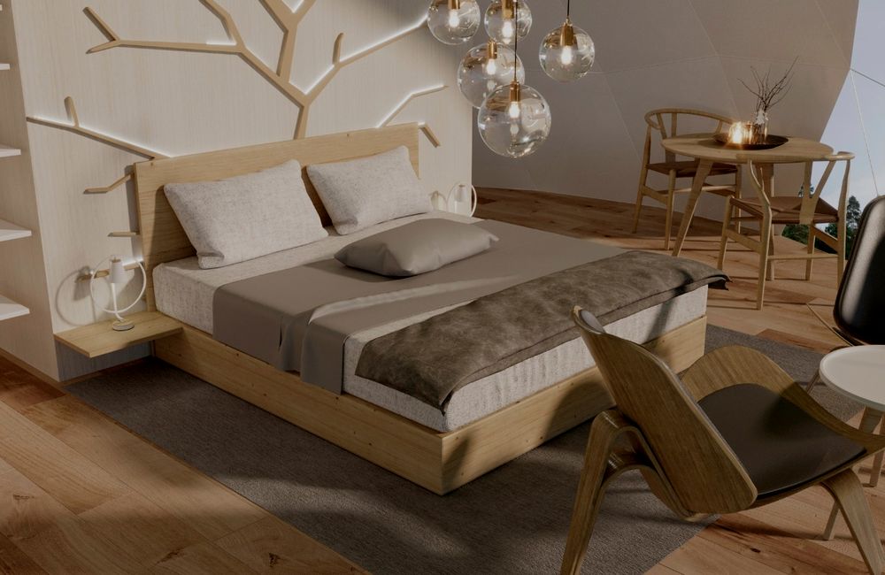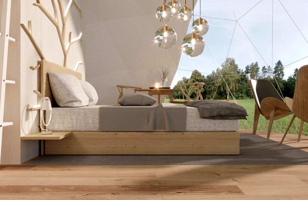Глэмпинг-домики выполнены в скандинавском стиле как с точки зрения интерьерных решений, так и во всем, что касается бережного отношения к природе.